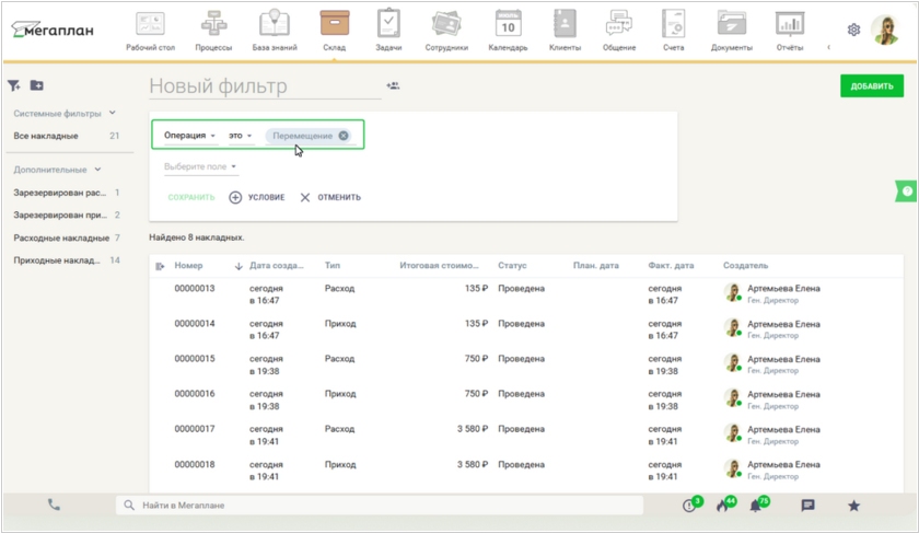 Мегаплан представил несколько обновлений, которые помогут вам организовать рабочие процессы гораздо проще, быстрее и удобнее. Теперь пользователи могут добавить QR-код в шаблоны счетов, чтобы упростить и ускорить их оплату. Получатель просто отсканирует код телефоном и оплатит в приложении своего банка. Генерация QR-кода работает как в шаблонах по умолчанию, так и в ваших собственных. Также, разработчики облегчили работу с журналом в карточках — задач, клиентов, процессов и склада. Теперь фильтровать данные там можно по сотрудникам, контактным лицам и каналам коммуникации, отдельно просматривать изменения. Благодаря этому находить информацию и документы в журнале стало проще, особенно в карточках с несколькими сотрудниками. Складской учёт стал эффективнее: теперь вы можете быстро перемещать товары между складами. Больше не придётся, как раньше, вручную создавать накладные прихода и расхода.