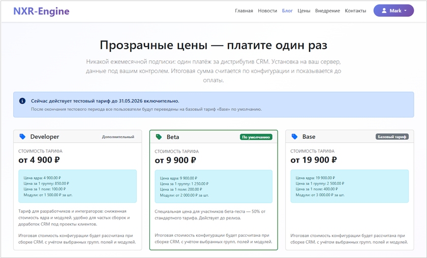 NXR‑Engine - новый конструктор CRM‑приложений, на котором можно собрать систему под свои бизнес‑процессы без программирования. Платформа рассчитана на малый и средний бизнес, которому нужны учёт клиентов и заказов, управление задачами персонала, воронки по стадиям работы с клиентом, автоматизация смены статусов и уведомлений. В системе есть ИИ‑помощник: можно описать словами, чем занимается компания, и получить черновик структуры - группы, поля, базовые статусы. Дальше конфигурацию дорабатывают вручную: добавляют своё, убирают лишнее. Структура данных редактируется в визуальном конструкторе: сущности (клиенты, заказы, заявки, объекты и т.п.), поля, связи между ними. После создания систему можно скачать и установить на свой сервер. Стоимость начинается от 9 900 руб.