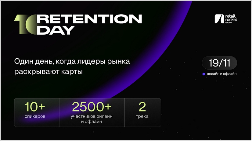 Уже 19 ноября на конференции RETENTION DAY 10 узнаем, как найти путь к сердцу клиента с помощью Retail Media, превратить трафик в выручку, обсудим кейсы в алкогольном сегменте и поговорим про работу с уникальной B2B и B2C аудиторией в клик-ин и клик-аут форматах.