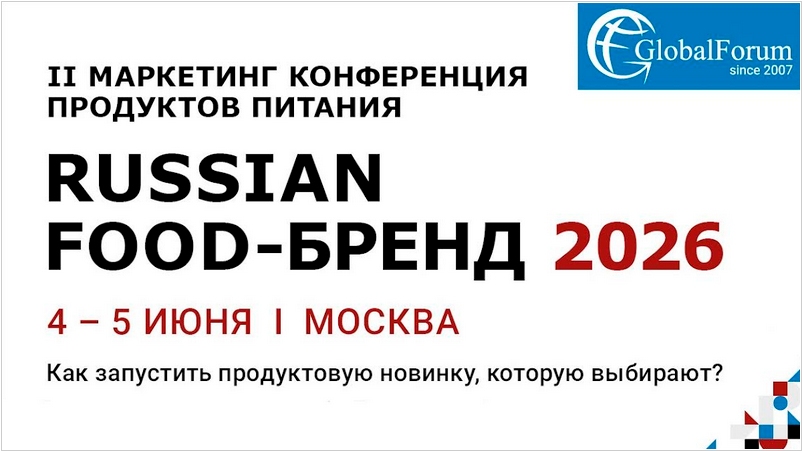 4-5 июня 2026 в Москве (в отеле RADISSON BLU BELORUSSKAYA) состоится II Маркетинг конференция продуктов питания RUSSIAN FOOD-БРЕНД 2026
