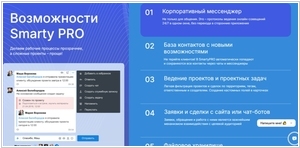 Нижегородская компания Облачные технологии произвела небольшой ребрендинг своей системы Smarty CRM - теперь она называется SmartyPRO и позиционируется как единое рабочее пространство для удалённого, эффективного управления бизнесом. Это система для работы в «одном окне» не только с клиентами, но и с собственным корпоративным мессенджером, задачами, проектами, файлами, обсуждениями. В SmartyPRO автоматически попадают и сохраняются все контакты через чаты и мессенджеры. Заявки и сделки с сайта или чат-ботов - обрабатываются с помощью внутреннего таск-трекера. Наличие API позволяет формировать заявки из других информационных систем. Особенно компания фокусирует внимание на конструкторе чат-ботов, которые автоматизируют коммуникаций с клиентами. Стоимость сейчас начинается от 399 ₽/мес за пользователя в месяц.