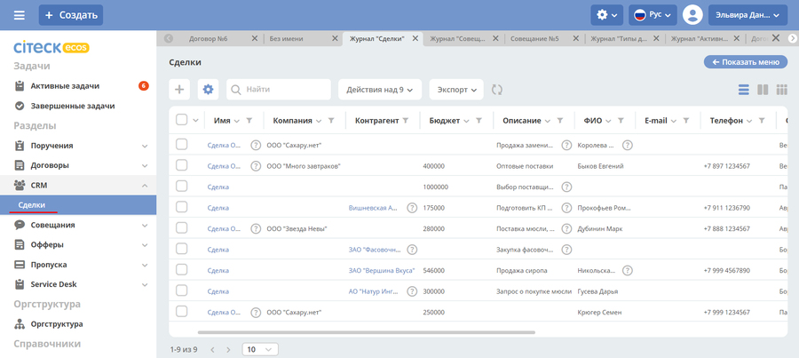 В Citeck CRM добавлена возможность видеть полную комплексную информацию по заказчику — «Клиент 360». Теперь карточки контрагентов не только содержат всю базовую информацию, но и отображают данные по сделкам, заказам и платежам, договорам и другим документам, поддержке и проектам. Отображение данных, в том числе чувствительных, зависит от настроенной матрицы прав. Также добавлен новый вид графической статистики — «Воронка». Виджет наглядно отражает прогресс сделок и позволяет получить детализацию данных в один клик. При нажатии на конкретную стадию воронки откроется журнал с соответствующей фильтрацией по датам, статусам, ответственным. Содержание можно выгрузить и таким образом получить отчет. Аналогичную доработку получили и другие виджеты с графической статистикой.